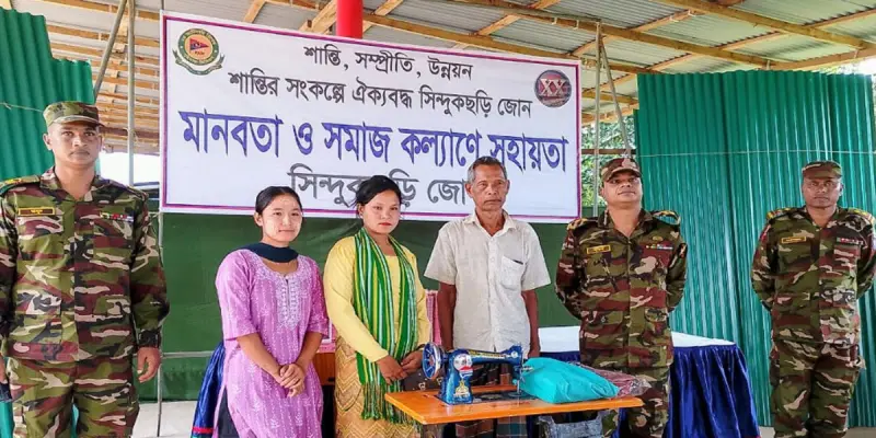 এরই ধারাবাহিকতায় আজ বৃহস্পতিবার (১৯ জুন) সিন্দুকছড়ি জোন সদরে স্থানীয় সুবিধা বঞ্চিত, অসহায় পরিবারের মাঝে সেলাই মেশিন, অতিবৃষ্টিতে ভেঙ্গে পড়া গৃহ নির্মাণে অক্ষম ব্যক্তিদের ঢেউটিন, স্কুলের গরিব ছাত্র-ছাত্রীদের মাঝে শিক্ষা সামগ্রী সহ অসুস্থ ও দুঃস্থ পরিবারের মাঝে নগদ অর্থ বিতরণ করেন, বাংলাদেশ সেনাবাহিনীর গুইমারা রিজিয়নের সিন্ধুকছড়ি জোন।