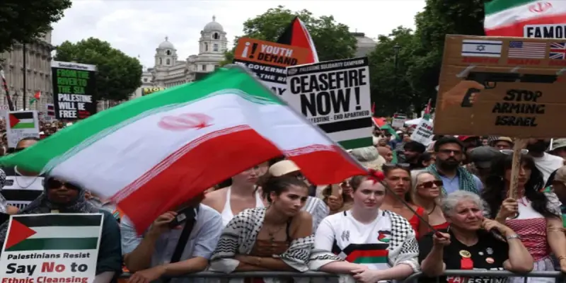 সেন্ট্রাল লন্ডনে ফিলিস্তিনের সমর্থনে বিশাল এক র্যালিতে হাজার হাজার মানুষ অংশ নেন। এই র্যালিতে অনেককে ইরানের পতাকা ওড়াতে দেখা যায়। বিক্ষোভকারীরা গাজায় জরুরি সাহায্য পাঠানোর এবং ইসরায়েলকে ইরান আক্রমণ বন্ধ করার আহ্বান জানান।