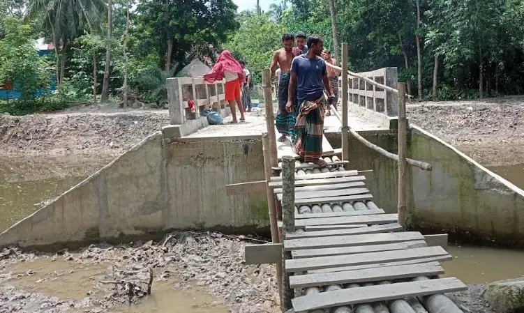 সেতুর দুই পাশে র্যাম্প নির্মাণে এক পাশে মাটি দিলেও অন্য পাশে কোনো মাটি না দেওয়ায় সাধারণ মানুষ চলাচল করতে পারছে না। ফলে বাধ্য হয়ে এলাকাবাসী সুপারি গাছ ও বাঁশের সাঁকো তৈরি করে কোনোভাবে পারাপার করছে। এলাকাবাসীর আরও অভিযোগ, সেতুর দুই পাশের র্যাম্পে হাত দিলে সহজেই ধসে পড়ে যায়, যা নির্মাণকাজের মান নিয়ে প্রশ্ন তোলে।