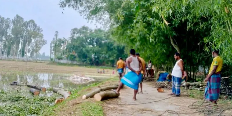 নাম প্রকাশে অনিচ্ছুক একাধিক ব্যক্তি জানান, ওই ইউনিয়নের প্যানেল চেয়ারম্যান শামসুল হকসহ স্থানীয় কয়েকজন বিএনপি নেতার যোগসাজশে গোপনে অবৈধভাবে রাস্তার দুই ধারের প্রায় একুশটি গাছ বিক্রয় করে টাকা ভাগবাটোয়ারা করে নেন।