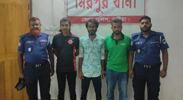 আটককৃত আসামিরা হলেন, মিরপুর উপজেলার আমলা ইউনিয়নের মিটন গ্রামের সোনারুল খানের ছেলে ইউনিয়ন ছাত্রদলের সভাপতি অনিক খান (২৪), একই গ্রামের মৃত ফারুক হোসেনের ছেলে নাঈম (২৩) ও নিমাই চাঁদের ছেলে নাঈম (২৩)।
