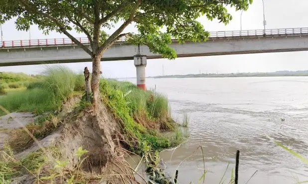 যেখানে এক সময় বসে মানুষ নদীর শোভা দেখতো, স্রোতের তালে সেই স্থান এখন বিলীন। সেতুর একটি পিলার থেকে নদী ভাঙন আজ মাত্র একশ ফুটেরও কম দূরে। যেন নিঃশব্দে এগিয়ে আসছে অদৃশ্য হুমকি।