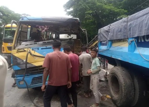 প্রত্যক্ষদর্শী ইমাম হোসাইন ইমন বলেন, সিমেন্ট বোঝায় রয়েল সিমেন্টের একটি মিনি ট্রাক নষ্ট হয়ে রাস্তার উপরে দাঁড়িয়ে ছিল। যাত্রীবাহী একটি বাস নিয়ন্ত্রণ হারিয়ে ওই মিনি ট্রাকের পেছনে ধাক্কা দেয়।