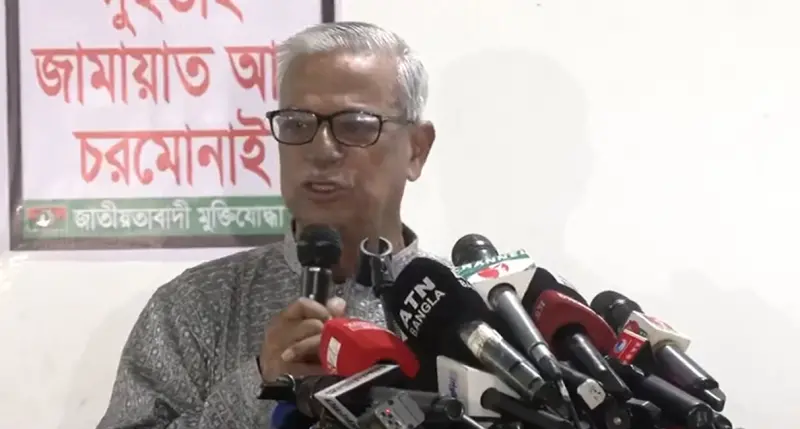 বুধবার (১৬ জুলাই) জাতীয় প্রেসক্লাবে মুক্তিযোদ্ধা দল আয়োজিত বিএনপির ভারপ্রাপ্ত চেয়ারম্যান তারেক রহমানকে নিয়ে ষড়যন্ত্রমূলক মিথ্যাচার এবং অপপ্রচারের বিরুদ্ধে প্রতিবাদ সভায় এ কথা বলেন তিনি।