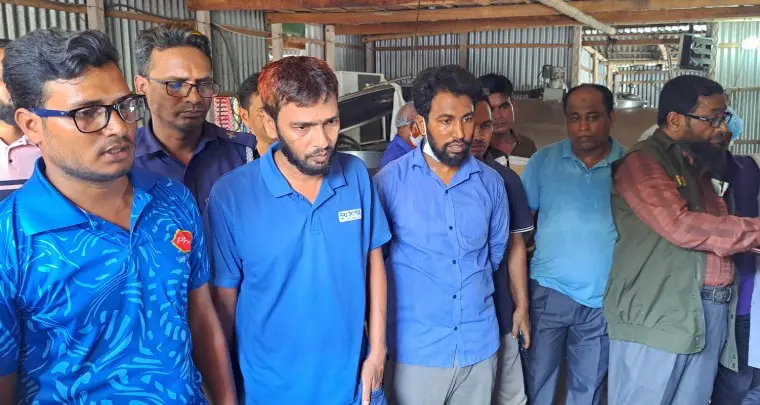 আটককৃতরা হলেন, লাঙ্গলমোড়া গ্রামের শাহাদত হোসেনের ছেলে সাইদুল ইসলাম (৪৫), সাইদুল ইসলামের ছেলে লিটন হোসেন (১৯), হযরত আলীর ছেলে নিজাম উদ্দিন (৫০), খবির উদ্দিনের ছেলে রুবেল হোসেন (২০) ও রিফাজ আলীর স্ত্রী মাজেদা খাতুন (৩৫)।