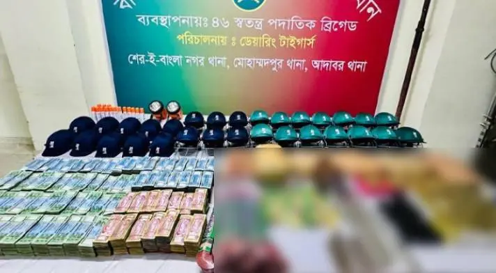 বৃহস্পতিবার (১৪ আগস্ট) গভীর রাতে চালানো এই অভিযানে ১৩টি তাজা ককটেল, ২৫ টি আধা প্রস্তুতকৃত ককটেল, ৪০০ গ্রাম গানপাউডার বিস্ফোরক, ২টি সামুরাই তলোয়ার, ১২টি হকিস্টিক, ২৯টি হেলমেট, ২টি ড্রাগন লাইট, ১১ কেজি গাঁজা, ১২ প্যাকেট হেরোইন, নগদ ১ কোটি ১৩ লাখ টাকা এবং ১টি টাকা গণনার মেশিন উদ্ধার করা হয়েছে।