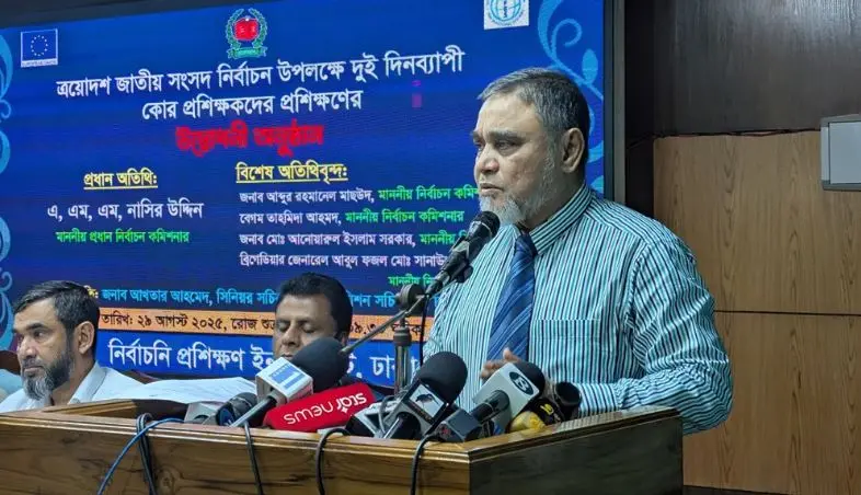 শুক্রবার (২৯ আগস্ট) আগারগাঁওয়ে নির্বাচনী প্রশিক্ষণ ইনস্টিটিউটে (ইটিআই) ‘ত্রয়োদশ সংসদ নির্বাচন উপলক্ষে দুই দিনব্যাপী কোর প্রশিক্ষকদের প্রশিক্ষণ’ কর্মসূচি উদ্বোধন করেন সিইসি। এসময় চার নির্বাচন কমিশনার, ইসি সচিব ও ইটিআই মহাপরিচালকসহ সংশ্লিষ্ট কর্মকর্তারা উপস্থিত ছিলেন।