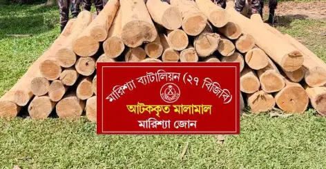 বাঘাইছড়িতে গোপন তথ্যের ভিত্তিতে বিপুল পরিমাণ অবৈধ সেগুন গোল কাঠ জব্দ করে মারিশ্যা জোন।