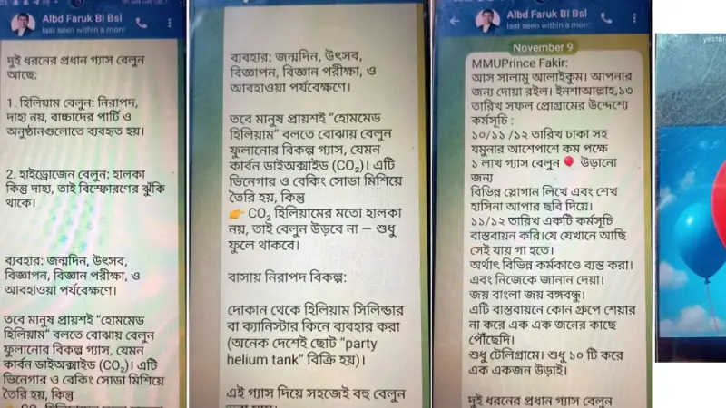 বিবৃতিতে বলা হয়েছে, গ্রেফতার ব্যক্তিরা ঝটিকা মিছিল, উসকানিমূলক স্লোগান এবং বেলুন উড়িয়ে জনমনে আতঙ্ক সৃষ্টি ও আইনশৃঙ্খলা পরিস্থিতি অস্থিতিশীল করার পরিকল্পনা করছিল। এছাড়া, তারা আগামী ১০-১২ নভেম্বর রাষ্ট্রীয় অতিথি ভবন যমুনা ও এর আশপাশে কার্যক্রম নিষিদ্ধ আওয়ামী লীগের স্লোগান সম্বলিত এক লক্ষ গ্যাস বেলুন ওড়ানোর পরিকল্পনা করছিল।