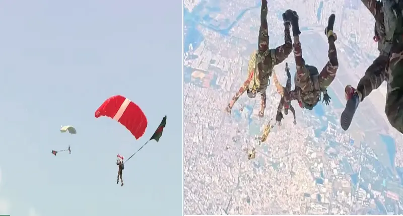 প্যারাট্রুপার প্রদর্শনীতে অংশ নেন ‘টিম বাংলাদেশ’-এর ৫৪ জন প্যারাট্রুপার।