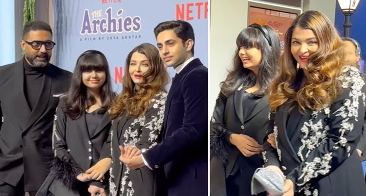 ‘দ্য আর্চিজ’-এর প্রিমিয়ারে বসেছিল বলিউড তারকাদের মেলা। অগস্ত্যর ছবির প্রিমিয়ার নিয়ে পুরো বচ্চন পরিবার ছিল উচ্ছ্বসিত। অগস্ত্যকে পরামর্শও দিয়েছেন ঐশ্বরিয়া। একা ছবি তোলার জন্য উৎসাহিত করে বলেছেন, ‘অ্যাগি একা ছবি তোলো। অভ্যস্ত হতে হবে।’