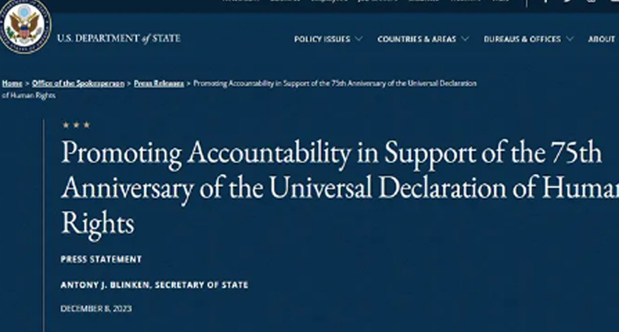 যুক্তরাষ্ট্রের পররাষ্ট্রমন্ত্রী অ্যান্টনি ব্লিঙ্কেন মানবাধিকার ও মানবাধিকারের সার্বজনীন ঘোষণার এই বার্ষিকী উপলক্ষে শুক্রবার (৮ ডিসেম্বর) মন্ত্রণালয়ের ওয়েবসাইটে বিবৃতি দিয়েছেন।