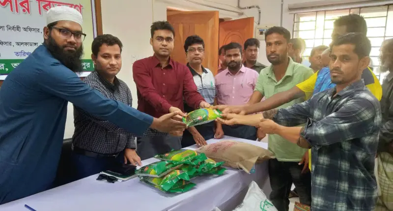 কৃষি প্রণোদনা কর্মসূচির আওতায় ফরিদপুরের আলফাডাঙ্গায় ২০২৪-২৫ অর্থ বছরে খরিপ-১ মৌসুমে পাট ও উফশি আউশ ধান ফসল আবাদ ও উৎপাদন বৃদ্ধির জন্য ক্ষুদ্র ও প্রান্তিক কৃষকের মাঝে বিনামূল্যে বীজ ও সার বিতরণ করা হয়েছে।