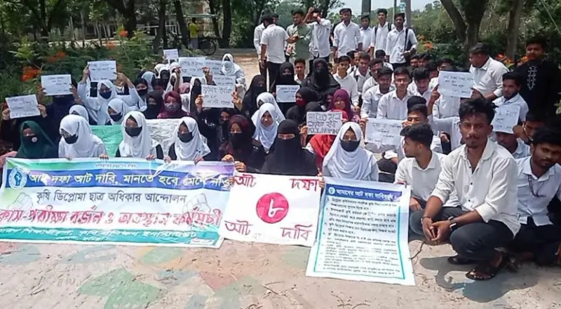দেশব্যাপী ঘোষিত কর্মসূচির অংশ হিসেবে কুমিল্লার হোমনা উপজেলায় কৃষি প্রশিক্ষণ ইনস্টিটিউটের শিক্ষার্থীরা আট দফা দাবিতে ক্লাস ও পরীক্ষা বর্জন করে দ্বিতীয় দিনের মতো অবস্থান কর্মসূচি পালন করেছেন।