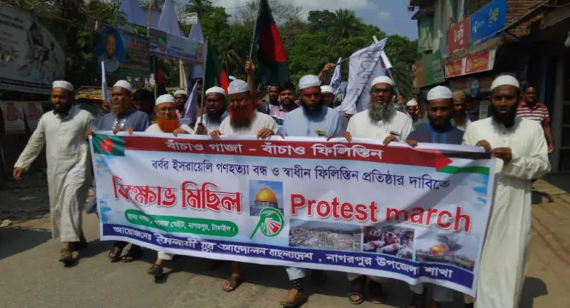 বাঁচাও ফিলিস্তিন 'বাঁচাও গাজা' এই প্রতিপাদ্যকে সামনে রেখে বর্বর ইসরায়েলি গণহত্যা বন্ধ ও স্বাধীন ফিলিস্তিন প্রতিষ্ঠার দাবিতে টাঙ্গাইলের নাগরপুর ইসলামী যুব আন্দোলন বাংলাদেশ উপজেলা শাখার আয়োজনে বিক্ষোভ মিছিল অনুষ্ঠিত হয়েছে।