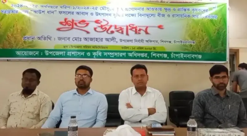 ২০২৪-২৫ অর্থবছরে কৃষি প্রণোদনার আওতায় চাঁপাইনবাবগঞ্জের শিবগঞ্জে ৭ হাজার ক্ষুদ্র ও প্রান্তিক কৃষকের মাঝে আউশ ধান বীজ ও রাসায়নিক সার বিতরণ করা হয়েছে।