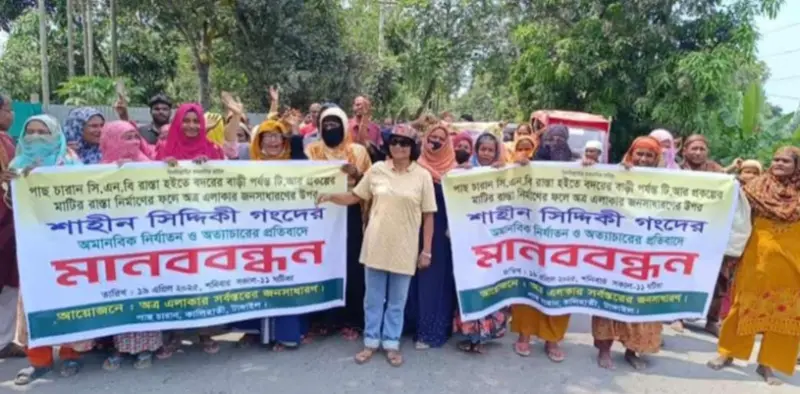 তারই অংশ হিসেবে শনিবার (১৯ এপ্রিল) দুপুরে উপজেলার কোকডহরা ইউনিয়নের পাছ চারান গ্রামে স্থানীয়রা মানববন্ধন করেন।