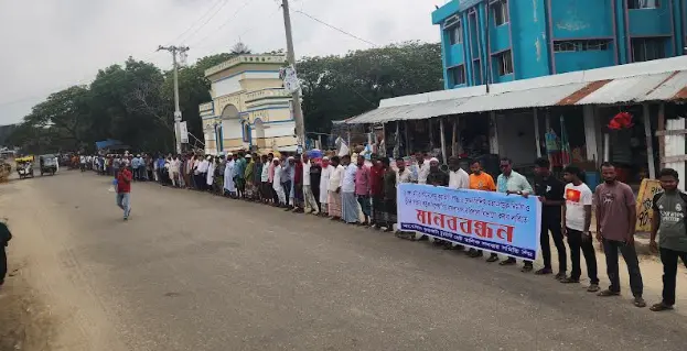 ভাঙ্গা থেকে কুয়াকাটা পর্যন্ত ৬ লেনের রাস্তা নির্মাণ ও চীন সরকারের অর্থায়নে পর্যটন নগরী কুয়াকাটায় ১টি বিশেষায়িত হাসপাতাল নির্মাণ করার দাবীতে মানববন্ধন অনুষ্ঠিত হয়েছে ।