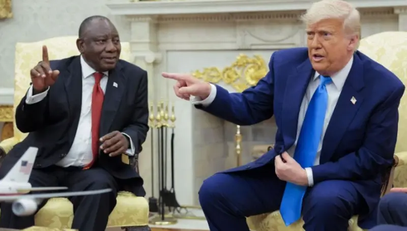 হোয়াইট হাউজের বৈঠক মাঝে মাঝেই উসকানি ও বিব্রতকর মুহূর্তে গিয়ে ঠেকে। দক্ষিণ আফ্রিকার প্রেসিডেন্ট সিরিল রামাফোসার সঙ্গে বৈঠক এর চূড়ান্ত উদাহরণ। গতকাল বুধবারের ওই বৈঠকটি যেন ছিল তাকে হেনস্তা করার জন্য আগভাগে প্রস্তুত করা সুসজ্জিত এক মঞ্চ। খবর বিবিসি বাংলা।