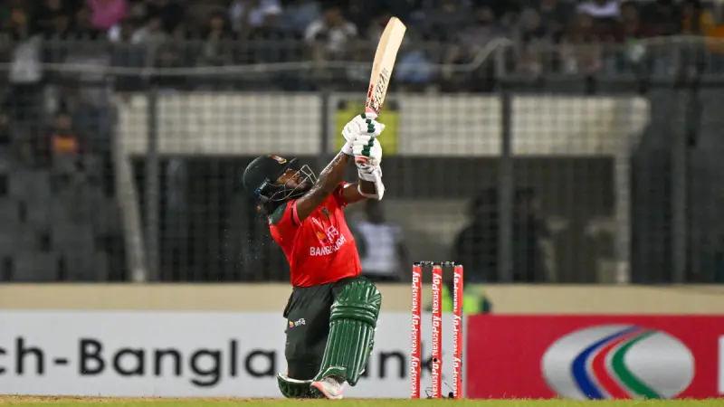 দলীয় ২৫ রানের মাথায় আরও একটি ধাক্কা আসে। প্রথম ম্যাচে ফিফটি হাঁকানো পারভেজ হোসেন ইমন এদিন থিতু হওয়ার আগেই আউট হয়ে যান। তিনি ফেরেন ১৩ রানে, যা দলের ওপর চাপ আরও বাড়িয়ে দেয়।