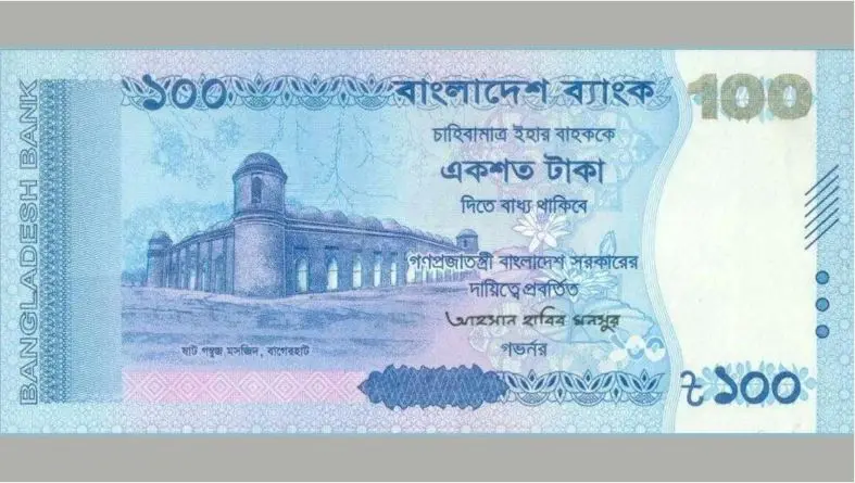 বিজ্ঞপ্তিতে বলা হয়, বাংলাদেশ ব্যাংক দেশের ঐতিহাসিক ও প্রত্নতাত্ত্বিক স্থাপত্যের নতুন ডিজাইন ও সিরিজে সব মূল্যমানের নতুন নোট মুদ্রণের কার্যক্রম গ্রহণ করেছে। তার ধারাবাহিকতায়, ১০০০, ৫০ ও ২০ টাকার নোটের পর ব্যাংকের গভর্নর আহসান এইচ মনসুরের স্বাক্ষরিত করা ১০০ টাকার নতুন নোট এবার বাজারে প্রচলন করা হবে।