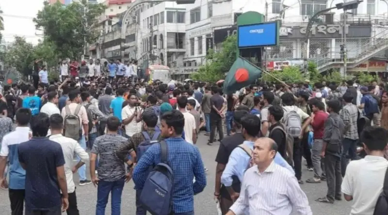 প্রস্তাবিত ঢাকা সেন্ট্রাল ইউনিভার্সিটির বিরুদ্ধে অবস্থান গ্রহণ এবং নিজেদের অস্তিত্ব ধরে রাখার প্রচেষ্টায় রাজধানীর গুরুত্বপূর্ণ মোড় সাইন্সল্যাব অবরোধ করেছেন ঢাকা কলেজের শিক্ষার্থীরা।