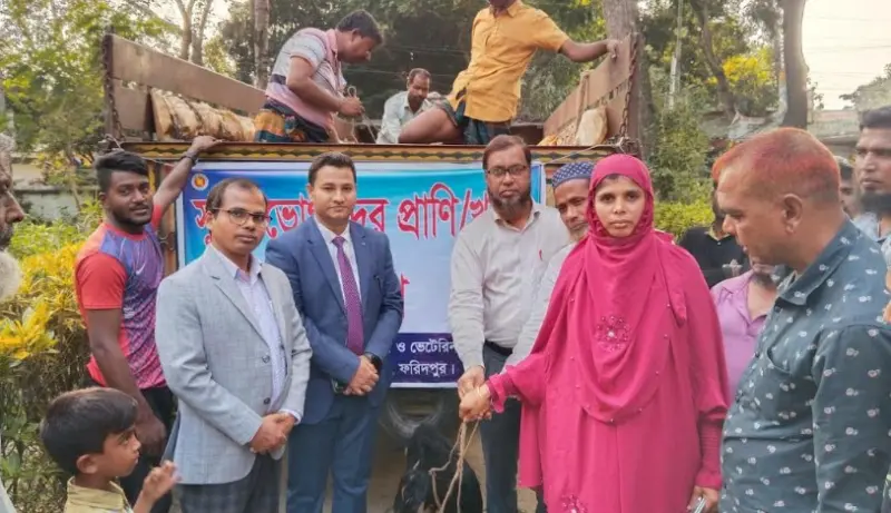 ফরিদপুরের আলফাডাঙ্গা উপজেলার নদীবিধৌত চরাঞ্চলের আর্থ-সামাজিক উন্নয়নের লক্ষ্যে সমন্বিত প্রাণিসম্পদ উন্নয়ন প্রকল্পের আওতায় ৯২টি দরিদ্র পরিবারের মধ্যে ১৮৪টি ছাগল বিতরণ করা হয়েছে।