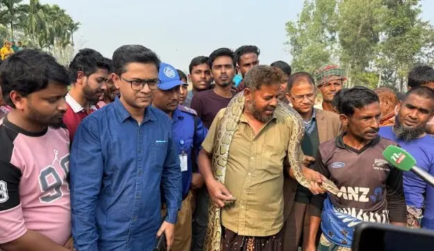 কুড়িগ্রামের ভূরুঙ্গামারী উপজেলার কামাতআংগারিয়া ও ভাসানীপাড়া গ্রাম থেকে প্রায় ৯ ফুট লম্বা বিশাল আকৃতির একটি অজগর সাপ উদ্ধার করা হয়েছে।