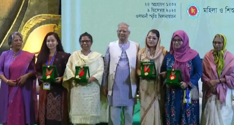 আজ মঙ্গলবার (৯ ডিসেম্বর) রাজধানীর ওসমানী স্মৃতি মিলনায়তনে অনুষ্ঠিত অনুষ্ঠানে অন্তর্বর্তী সরকারের প্রধান উপদেষ্টা ড. মুহাম্মদ ইউনূস তাদের হাতে পদক তুলে দেন।