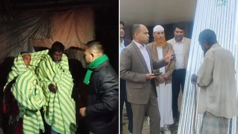 জানা যায়, গেল সোমবার (৮ ডিসেম্বর) রাতে শীতবস্ত্র বিতরণ কার্যক্রমের অংশ হিসেবে এলাকায় ঘুরে বেড়াচ্ছিলেন ভূঞাপুর উপজেলা নির্বাহী অফিসার (ইউএনও) মো. মাহবুব হাসান। এ সময় স্থানীয় একজন ব্যক্তি তাকে হাতেম আলীর বাড়িতে নিয়ে যান। সেখানে গিয়ে ইউএনও দেখেন- পাতলা পলিথিনে মোড়ানো ছোট্ট খুপড়ির ভেতরে সলতের ক্ষীণ আলো টিমটিম করছে, আর মাটিতে বিছানো পুরোনো চটের ওপর কাঁপতে কাঁপতে শুয়ে আছেন বৃদ্ধ দম্পতি।