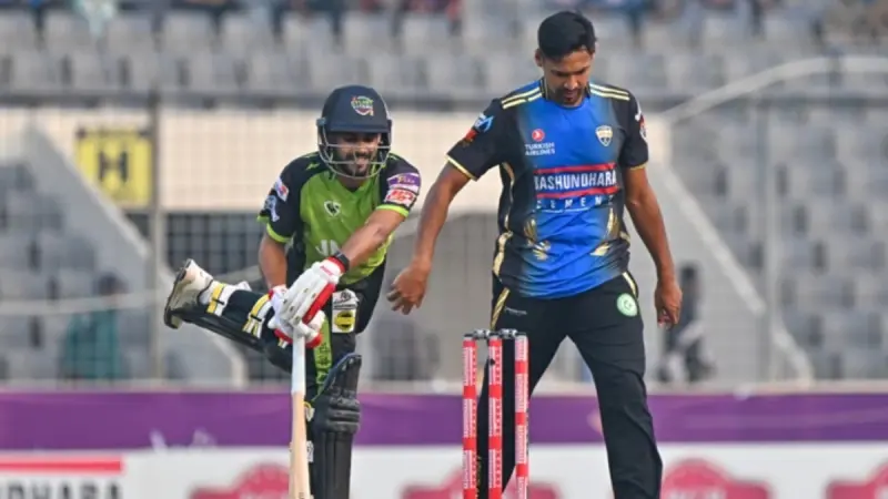 তাওহীদ হৃদয়, ডেভিড মালান, লিটন দাস ও কাইল মেয়ার্স—চারজনই এক অঙ্কের ঘরে ফিরে যান। দলের শুরুর এই বিপর্যয়ে বড় সংগ্রহের স্বপ্ন তখনই ধাক্কা খায়। এরপর খুশদিল শাহ ও মাহমুদউল্লাহ রিয়াদ কিছুটা প্রতিরোধ গড়ার চেষ্টা করেন। খুশদিল ১৯ বলে ৩০ রান করে ইনিংসে গতি আনলেও বেশিক্ষণ টিকতে পারেননি।
