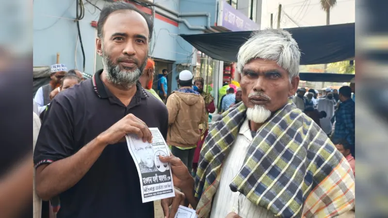 আসন্ন ত্রয়োদশ জাতীয় সংসদ নির্বাচনে পাবনা-৩ (চাটমোহর–ভাঙ্গুড়া–ফরিদপুর) আসনে জামায়াতে ইসলামী মনোনীত ১১ দলীয় ঐক্যজোটের প্রার্থী অধ্যাপক মাওলানা মুহাম্মাদ আলী আছগারের পক্ষে ভোট চেয়ে গণসংযোগ ও লিফলেট বিতরণ করছেন গণঅধিকার পরিষদের ভাঙ্গুড়া উপজেলা শাখার সাবেক সভাপতি জাহিদুর রহমান খান দুলাল।