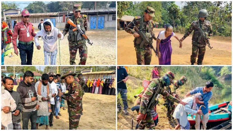 নির্বাচনের দিন প্রত্যন্ত ও দুর্গম এলাকার ভোটাররা যাতে নির্বিঘ্নে কেন্দ্রে পৌঁছে ভোটাধিকার প্রয়োগ করতে পারেন, সে লক্ষ্যে সেনাসদস্যদের সক্রিয় থাকতে দেখা গেছে। বিভিন্ন এলাকায় টহল জোরদার, ভোটকেন্দ্রে নিরাপত্তা নিশ্চিতকরণ এবং জনসাধারণের চলাচলে সহায়তার মাধ্যমে স্থিতিশীল পরিবেশ বজায় রাখা হচ্ছে।