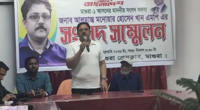 মাগুরা-১ আসনের নবনির্বাচিত সংসদ সদস্য মনোয়ার হোসেন খান মাগুরা প্রেসক্লাবে এক সংবাদ সম্মেলন করেছেন।