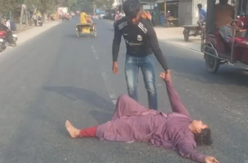 রংপুরের তারাগঞ্জ উপজেলায় বিয়ের দাবিতে মহাসড়কে শুয়ে পড়েছেন এক নারী।