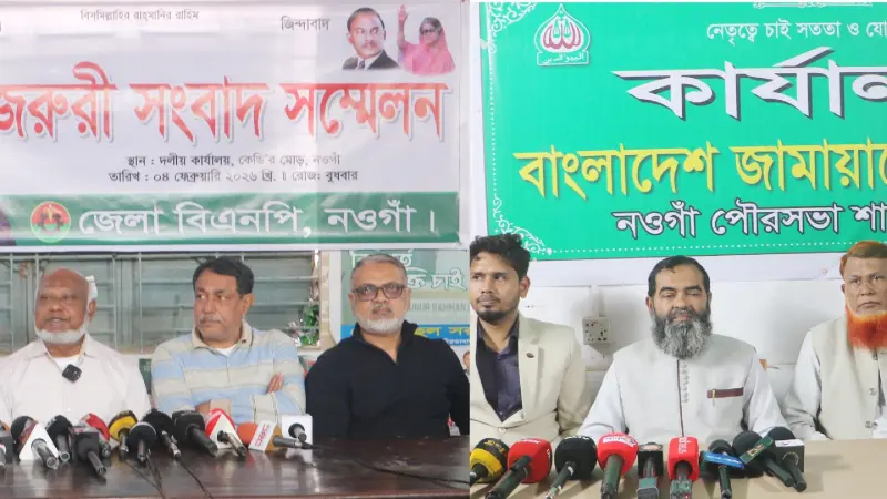 নওগাঁয় জামায়াত–বিএনপির সংঘর্ষ: দোষারোপ করে পাল্টাপাল্টি সংবাদ সম্মেলন