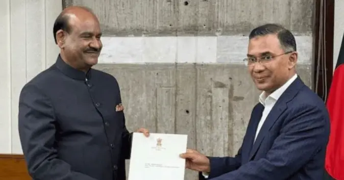 বাংলাদেশের নতুন প্রধানমন্ত্রী তারেক রহমানকে ভারত সফরের আমন্ত্রণ জানিয়েছেন দেশটির লোকসভার স্পিকার ওম বিড়লা।মঙ্গলবার (১৭ ফেব্রুয়ারি) নতুন সরকার শপথ গ্রহণের পর সন্ধ্যায় তারেক রহমানের সঙ্গে সাক্ষাৎ করে ভারত সফরের আমন্ত্রণ জানান দেশটির লোকসভার স্পিকার।স্পিকার ওম বিড়লা ভারতের প্রধানমন্ত্রী নরেন্দ্র মোদির পক্ষ থেকে তারেক রহমানকে শুভেচ্ছা জানান। দুই নেতা জনকেন্দ্রিক সহযোগিতার তালিকা অনুসরণ করে বাংলাদেশ ও ভারতবাসীর কল্যাণে একত্রে কাজ করার আশা প্রকাশ করেছেন।নতুন সরকারের মন্ত্রিসভার শপথ অনুষ্ঠানে যোগ দেন ভারতের লোকসভার স্পিকার। তিনি এদিন দুপুরে ঢাকায় আসেন। তার সঙ্গে ভারতের পররাষ্ট্রসচিব বিক্রম মিশ্রিও ঢাকায় এসেছেন।এমআর-২