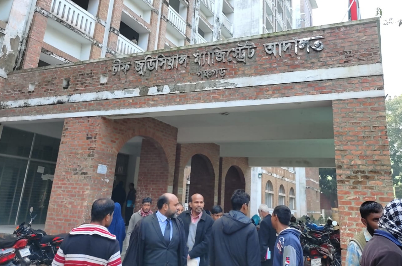 পঞ্চগড়ে আদালতে আসামীদের জামিন দেওয়ায় সংক্ষুব্ধ হয়ে এজলাস চলাকালীন সময় বিচারককে জুতা নিক্ষেপের ঘটনা ঘটেছে। জুতা নিক্ষেপ করেছে মামলার বাদীনি।