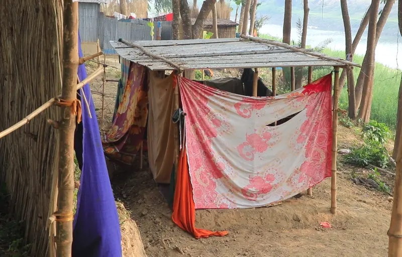 আশ্রয়ণ প্রকল্পে বসবাস করা ভূমিহীনদের খোঁজ করে জানা গেল তারা পার্শ্ববর্তী বাধে বসবাস করছেন। সেখানে গিয়ে দেখা যায়, ফুলমালা বেগম বাঁধের নিচে ছোট্ট একটা টিনের চাল ও পাটকাঠির বেড়া দিয়ে একটি ঘর তুলে একমাত্র ছেলেকে নিয়ে বসবাস করছেন। তার আশেপাশে এরকম ভুক্তভোগী পাওয়া গেল আরো কয়েকজনকে।