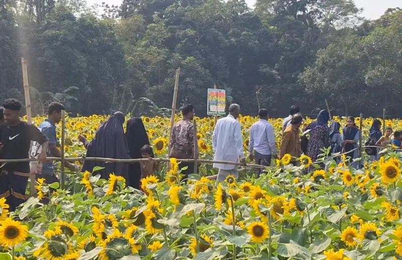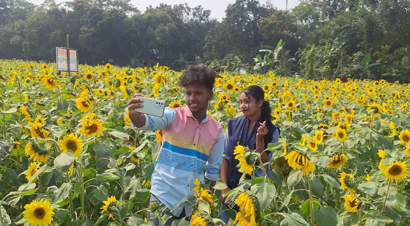 অবসর সময়ে ও দুপুরের তপ্ত রোদের পরে সূর্যমুখী বাগান পরিণত হয় নানা বয়সী মানুষের মিলনমেলায়। সূর্যমুখী ফুলের বাগানটি এখন সৌন্দর্যপ্রেমীদের কাছে দর্শনীয় স্থানে রূপান্তরিত হয়েছে। সূর্যমুখী চাষে দিন দিন আগ্রহও বাড়ছে কৃষকদের। তেলবীজ উৎপাদনের পাশাপাশি তৈরি হয়েছে কৃষি পর্যটনের নতুন সম্ভাবনাও। জনপ্রিয় এই সূর্যমুখীর বাগানে কেউ বন্ধু-বান্ধব কিংবা কেউ আসছেন পরিবার নিয়ে। কেউ শাড়ি পড়ে, কেউ বা আবার সালোয়ার কামিজ পরে তুলছেন ছবি বা সেলফি। কেউবা আবার ঘুরে বেড়াচ্ছেন বাগানের এ প্রান্ত থেকে ও প্রান্ত। বড়দের সাথে শিশুরাও মেতেছে সমান আনন্দে।