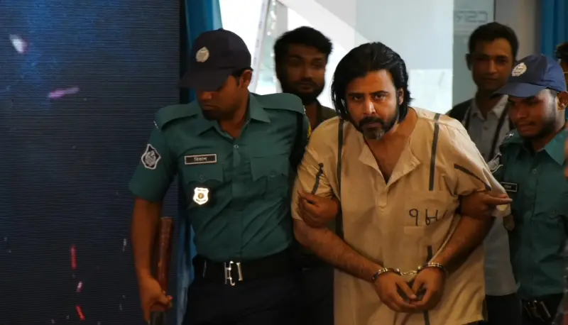 এর আগে পুলিশ ভ্যানে আফরান নিশোকে নিয়ে আসা হয় অনুষ্ঠানস্থলে। এছাড়াও সিনেমার দুই নায়িকা তমা মির্জা, সুনেরাহ বিনতে কামালসহ প্রযোজকরা এই সংবাদ সম্মেলনে হাজির হয়েছেন।
