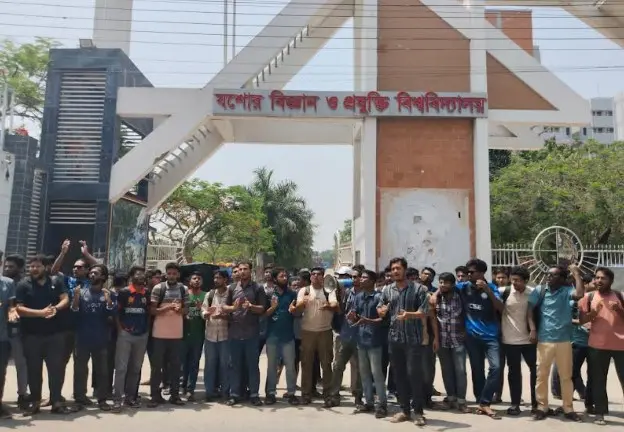 খুলনা প্রকৌশল ও প্রযুক্তি বিশ্ববিদ্যালয়ের (কুয়েট) চলমান আন্দোলনের প্রতি সংহতি জানিয়ে যশোর বিজ্ঞান ও প্রযুক্তি বিশ্ববিদ্যালয়ে (যবিপ্রবি) মানববন্ধন, বিক্ষোভ মিছিল ও প্রধান সড়ক অবরোধ করেছে শিক্ষার্থীরা।