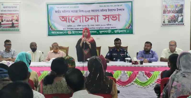 "দ্বন্দ্বে কোন আনন্দ নাই, আপোষ করো ভাই, লিগ্যাল এইড আছে পাশে, কোন চিন্তা নেই" এই স্লোগানকে এ রেখে কুড়িগ্রামের ফুলবাড়ীতে জাতীয় আইনগত সহায়তা দিবস উপলক্ষ্যে এক আলোচনা সভা অনুষ্ঠিত হয়েছে।