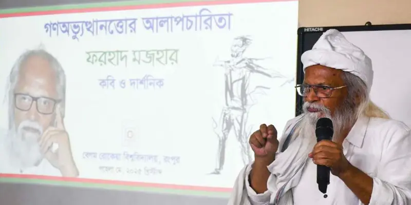 বৃহস্পতিবার (০১ মে ) দুপুরে বিশ্ববিদ্যালয়ের একাডেমিক ভবন-২ এর ভার্চুয়াল ক্লাসরুমে ‘গণঅভ্যুত্থানত্তোর আলাপচারিতা’ শীর্ষক আলোচনা সভায় বিশিষ্ট রাষ্ট্রচিন্তক, লেখক ও মানবাধিকার কর্মী ফরহাদ মজহার এসব কথা বলেন।