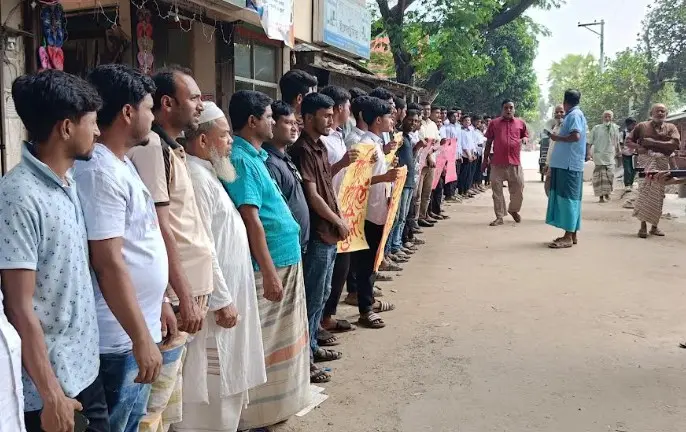অতিসম্প্রতি রাস্তা নির্মাণ কাজের জন্য নিম্নমানের ইট ও বালুর পরিবর্তে পোড়া মাটি ব্যবহার করা হচ্ছে বলে অভিযোগ করেন এলাকাবাসীরা। বার বার প্রতিবাদ জানানোর পরেও কোনো সংশ্লিষ্ট দপ্তর থেকে কোনো পদক্ষেপ না নেওয়ায় রোববার মানববন্ধন করেন তারা। অতিদ্রুত নিম্নমানের নির্মাণ সামগ্রী ব্যবহার বন্ধ করে সিডিউল অনুযায়ী কাজ করার দাবি জানান এলাকার লোকজন। মানববন্ধনে বক্তব্য দেন, গ্রামের ফজলুর রহমান, দিরাজুল ইসলাম, হাফিজুল ইসলাম, আব্দুল আলীম, নাসির উদ্দিন প্রমুখ।