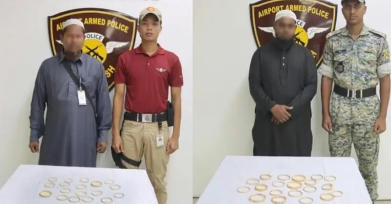 তিনি জানান, মঙ্গলবার দুপুর ২টার দিকে হযরত শাহজালাল আন্তর্জাতিক বিমানবন্দরের আগমনী এক নম্বর ক্যানোপি এলাকা থেকে মো. হাছান ও মো. শাহাজান নামের দুজন ব্যক্তি পুলিশের উপস্থিতি টের পেয়ে সুকৌশলে পালানোর চেষ্টা করেন। এ সময় এপিবিএন ফোর্স তাদের আটক করে। পরে তাদের এপিবিএন অফিসে নিয়ে শরীর তল্লাশি করলে হাছানের পাঞ্জাবির পকেট থেকে ৫০২ গ্রাম ও মো. শাহাজানের পাঞ্জাবির পকেট থেকে ৩৯৪ গ্রাম সোনার গহনা উদ্ধার করা হয়।