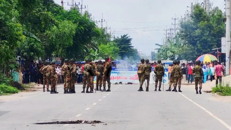 প্রত্যক্ষদর্শীরা জানান, সকালে শ্রমিকরা ইপিজেড গেটে প্রবেশ করতে গেলে সেনাবাহিনী সেখানে অবস্থান নেয়। এ সময় এক পর্যায়ে শ্রমিকদের সঙ্গে ধাওয়া-পাল্টা ধাওয়া শুরু হয়। পরে গুলি ছুড়ে পরিস্থিতি নিয়ন্ত্রণে আনার চেষ্টা করে সেনাবাহিনী।