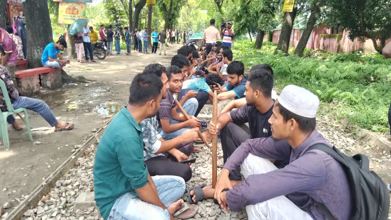 মঙ্গলবার (২ সেপ্টেম্বর) সকাল ১১টায় শিক্ষার্থীরা গুচ্ছ গুচ্ছ মিছিল নিয়ে আব্দুল মোড়সংলগ্ন রেললাইনে জমায়েত হতে থাকেন। পরে শিক্ষার্থীরা রেললাইনে ব্যারিকেড দিয়ে রাস্তার দুই পাশের যান চলাচল বন্ধ করে দেন। একই সঙ্গে শিক্ষার্থীরা ঢাকা–ময়মনসিংহগামী রেললাইনে বসে অবস্থান কর্মসূচি পালন করেন। ফলে ঢাকা–ময়মনসিংহ রেলপথে ট্রেন চলাচল বন্ধ হয়ে যায়।