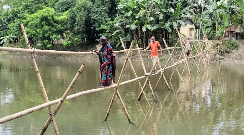 কুড়িগ্রামের ফুলবাড়ী উপজেলার ফুলবাড়ী সদর ইউনিয়নের বালাটারী ও চন্দ্রখানা গ্রামের মাঝখানে বয়ে যাওয়া নীলকমল নদীর ওপর আট গ্রামের ১০ হাজারের বেশি মানুষের ভরসা এখন এক বাঁশের সরু সাঁকো। গত তিন বছর ধরে জীবন হাতে নিয়ে এই সাঁকো দিয়েই প্রতিদিন পার হতে হচ্ছে স্থানীয়দের। আগে এখানে একটি কাঠের সেতু ছিল। সেটি ভেঙে গেলে আজও আর কোনো স্থায়ী সেতু হয়নি। জনপ্রতিনিধি ও প্রশাসনের লোকজন এসেছেন, দিয়েছেন আশ্বাস, কিন্তু কাজের কাজ কিছুই হয়নি।