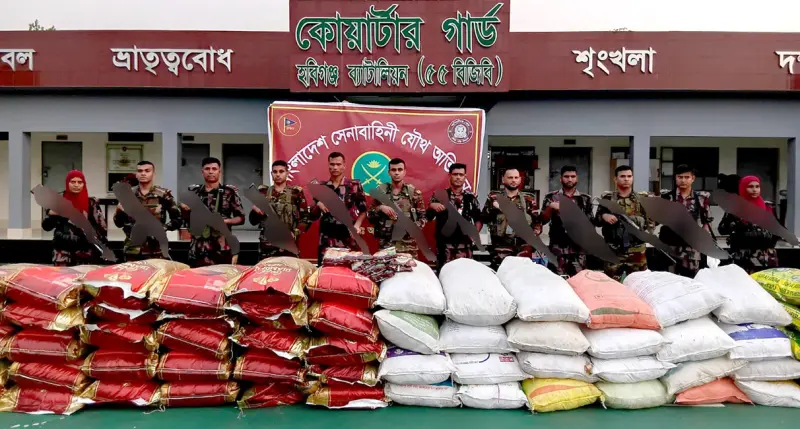 হবিগঞ্জ জেলার ৫৫ বিজিবি চোরাচালান দমন করতে সক্রিয় ভূমিকা পালন করছে। এরই অংশ হিসেবে গত ২৪ ঘন্টায় ৫৫ বিজিবি ৯টি সফল অভিযান পরিচালনা করে ভারত হতে চোরাই পথে আনা বিপুল পরিমাণ ভারতীয় গাঁজা, জিরা, ফুচকা, শাড়ী, চকলেট, ট্রাক, মাইক্রোবাস এবং বাইসাইকেল জব্দ করেছে। এসবের কিছু পণ্য ট্রাকের পাথরের নিচ থেকে জব্দ করা হয়। জব্দকৃত চোরাচালানীর মূল্য প্রায় ৪ কোটি ৬৯ লাখ ৫৪ হাজার ৫০০ টাকা।